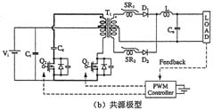 另外,如圖3所示,在采用絕緣變壓器的場合,研究人員還提出了將有源鉗位電路嵌入推挽式轉換器中的方案,可在采用48V輸入和1.2V/70A輸出的條件下實現高達91%的效率。上面講到的幾種電路方式基本上都是一段式結構,最近,出于進一步提高效率的考慮,人們正在加緊研發兩段式結構的轉換器。就普通的轉換器而言,采用兩段式結構將導致效率下降是人所共知的常識,然而,在低電壓大電流轉換器中,對輸出進行同步整流是很普遍的做法,因此,如何實現同步整流操作的高效化便成為了關鍵所在。