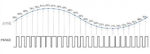 脈沖寬度調制(PWM)是一種對模擬信號進行數(shù)字編碼的方法。通過高分辨率計數(shù)器的使用,方波的占空比被調制用來對一個具體模擬信號進行編碼。PWM信號仍然是數(shù)字的,因為在給定的任何時刻,滿幅值的直流供電要么完全有(ON),要么完全無(OFF)。電壓或電流是以一種通(ON)或斷(OFF)的重復脈沖序列被加到模擬負載上去。通的時候即是直流供電被加到負載上的時候,斷的時候即是供電被斷開的時候。只要帶寬足夠,任何模擬值都可以使用PWM進行編碼。而占空比就是高電平持續(xù)時間與整個周期時間的比值,占空比越大,高電平持續(xù)的時間越長,模擬電路開通的時間就越長,如圖1所示。