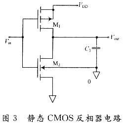 以反相器為例說明這種電路的工作原理,如圖1所示。M1和M2的連接方式與傳統的靜態CMOS邏輯電路相似。不同的是電源不再是恒定不變的,而是用一個正弦信號代替,這個信號同時起到同步電路工作的作用,因此又稱作電源時鐘。M3和M4連接成二極管的形式用來控制充放電的路徑。