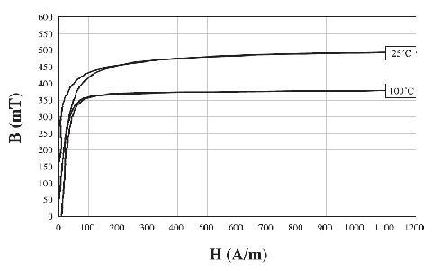 我們?cè)谠O(shè)計(jì)反激變壓器以及一些儲(chǔ)能電感時(shí),設(shè)定最大磁通量Bm尤為關(guān)鍵。由于電源起機(jī)和短路保護(hù)時(shí)最大磁通量Bm大于穩(wěn)態(tài)工作時(shí)的Bm,所以我設(shè)定變壓器的Bm時(shí)需要預(yù)留足夠的裕度。如圖4所示,磁芯溫度為100℃曲線可知Bm=0.35T時(shí)磁芯接近飽和,所以出于對(duì)電源起機(jī)、輸出過流和短路等極限情況考慮,鐵氧體P4材質(zhì)的變壓器的穩(wěn)態(tài)Bm一般小于0.25T。