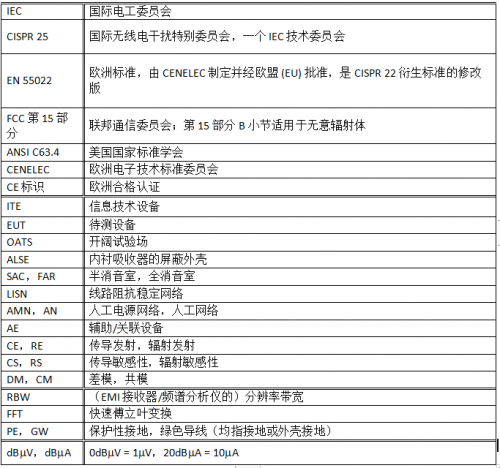 表 1:與 EMI 和 EMC 相關(guān)的常見縮略語、縮寫和單位。