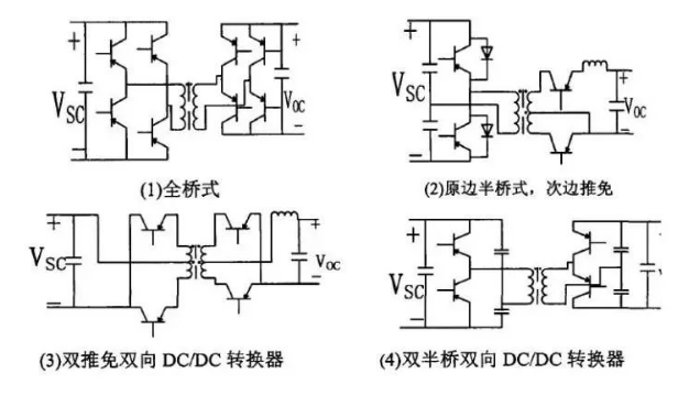 隔離型雙向DCDC,在非隔離型雙向DCDC轉(zhuǎn)換器的基礎(chǔ)上加上一個(gè)高頻變壓器就構(gòu)成了隔離型雙向DCDC轉(zhuǎn)換器,高頻變壓器兩側(cè)的電路拓?fù)淇梢允侨珮蚴健霕蚴健⑼仆焓降鹊取_@幾種隔離型的雙向DCDC轉(zhuǎn)換器,采用了更多的功率開關(guān),電壓變比大,帶電氣隔離等優(yōu)點(diǎn)。但是這類DCDC轉(zhuǎn)換器結(jié)構(gòu)復(fù)雜,成本也相對(duì)較高,轉(zhuǎn)換器的損耗高,低頻時(shí)會(huì)導(dǎo)致隔離變壓器鐵芯飽和,損耗會(huì)進(jìn)一步增加。因此,非隔離型雙向DCDC轉(zhuǎn)換器比隔離型在電動(dòng)汽車上運(yùn)用更具有優(yōu)勢(shì)。
